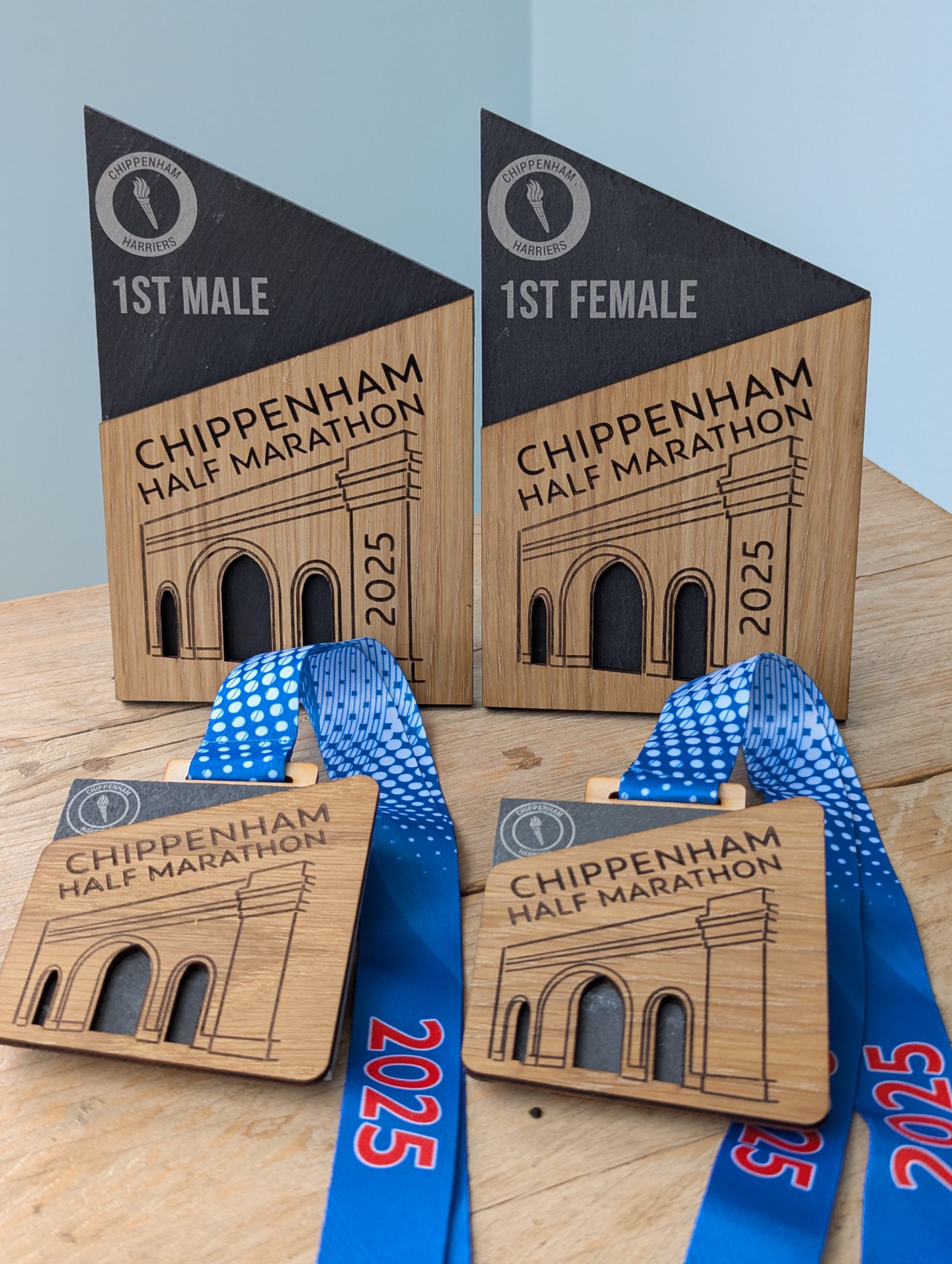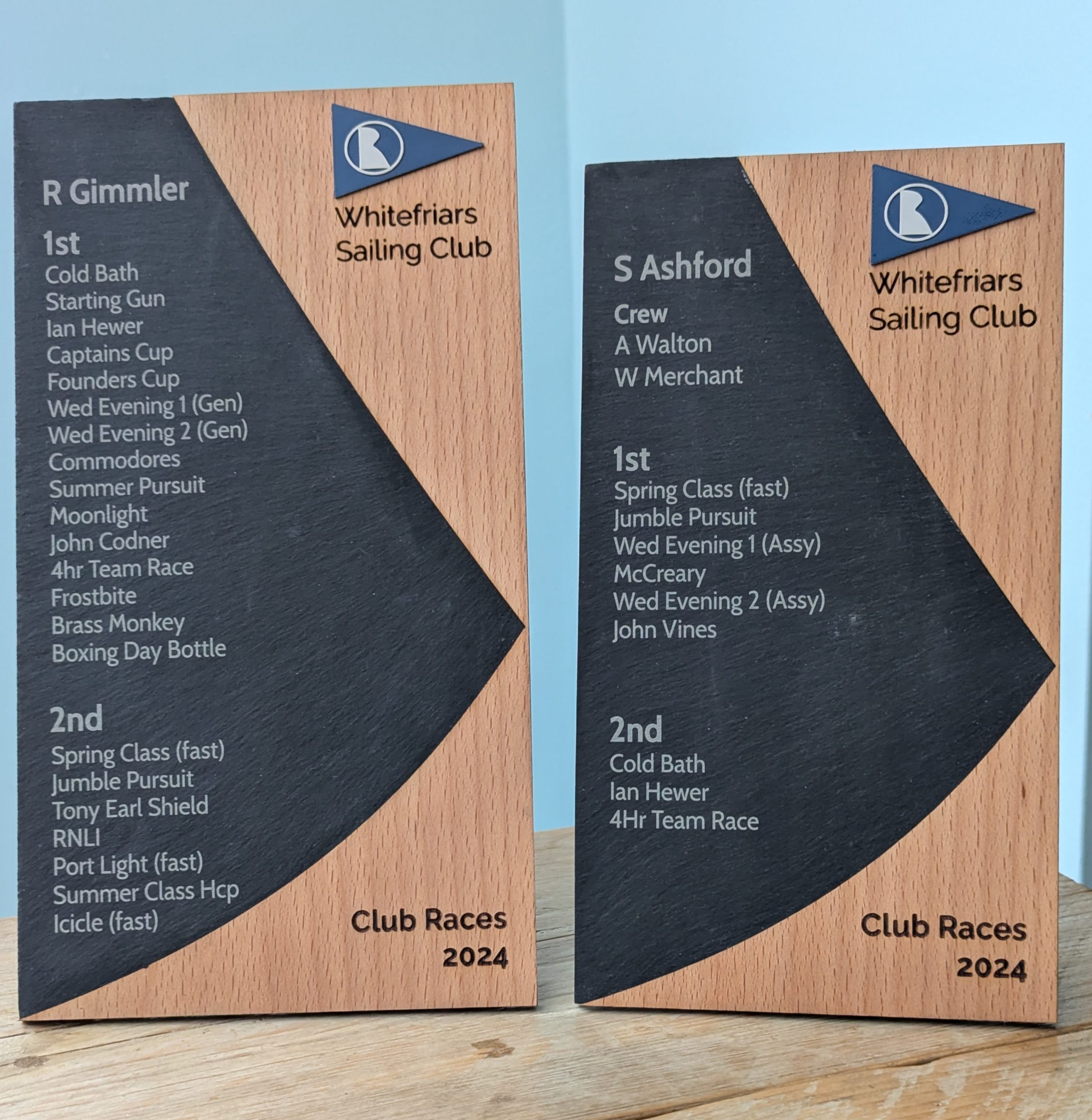 Celebrate every achievement with our hybrid multi-material trophies, expertly crafted to combine natural elegance with modern design. Made from a stunning mix of sustainably-sourced plywood, solid native hardwoods, natural slate, engraved mirror, and 3D-printed elements, these trophies are the perfect way to recognise accomplishments in running and sports races, triathlons, sailing competitions, and more.